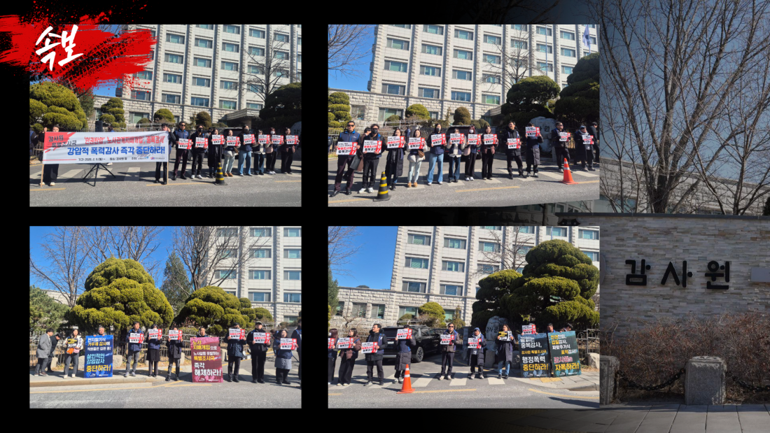 - 감사원은 노사관계지배개입 부당노동행위를 즉각 중단해야 한다.